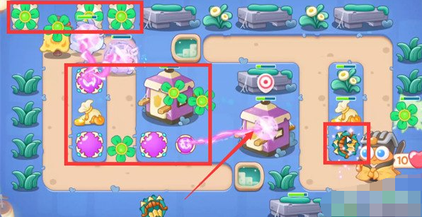 7、最后我们第十波把炮塔火力集中前半部分,最终地图布局如图所示。
