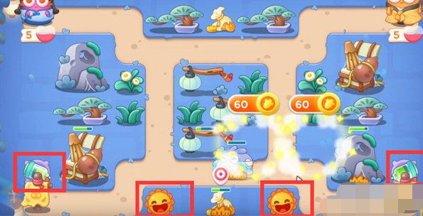 5、我们把剩余障碍打掉,炮塔摆放位置如图所示。