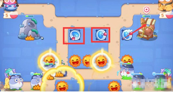 6、然后我们看到果冻兔出现,及时点掉被覆盖的炮塔,恢复火力。