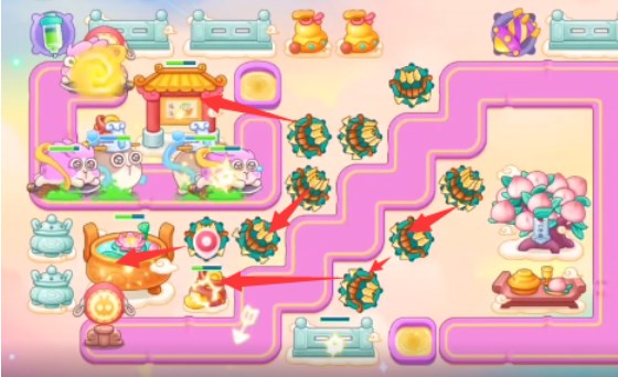 1、本关能够使用的炮塔是:毒针、船锚、多重箭、烟花,这一关用多重箭玩。