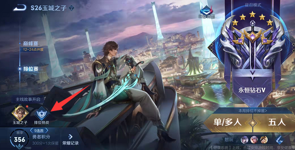 1、首先我们需要登录最新版本的王者荣耀,进入游戏大厅以后,点击排位。
