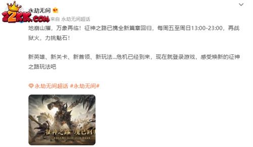 地崩山摧,万象再临!征神之路已携全新篇章回归,每周五至周日13:00-23:00,再战狱火,力挑魁石!