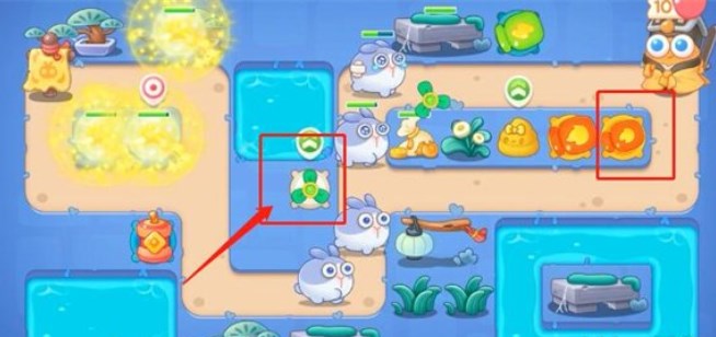 1、第一波开始,在左边加一爆竹,升一级,兔子从左边出怪口出现,右边再加一瓶子塔,升一级,随后升满级。
