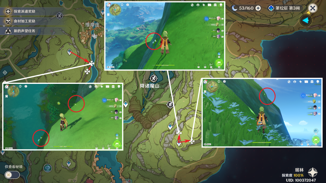 2,接下来就是采集地啦,劫波莲大多分布在悬崖边