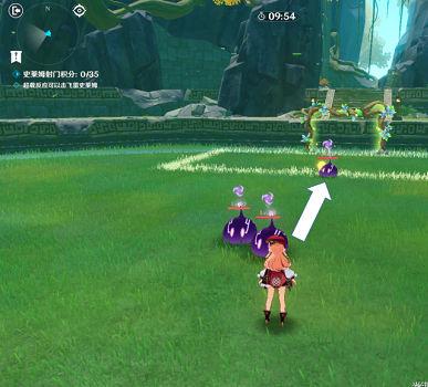 其实比起足球,更像是台球。此关中,可以使用烟绯或可莉用超载反应将雷史莱姆炸到藤蔓球门里。