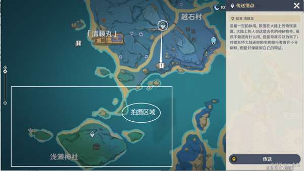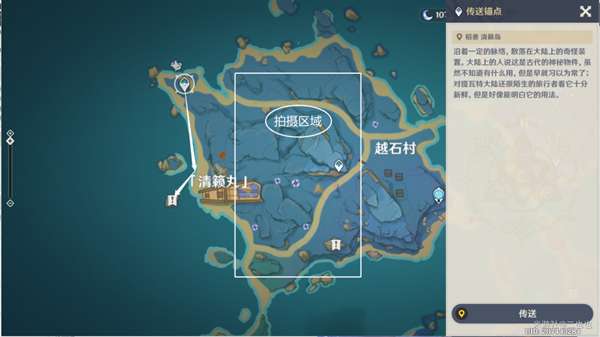 5、传送到清籁岛,四个拍照位置如图所示。