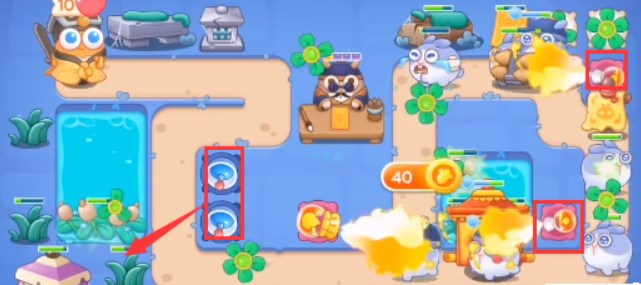 1、这一关的炮塔选择是:喷火器、雷达、风扇、雪球塔,这一关我们主要使用风扇和喷火器玩。