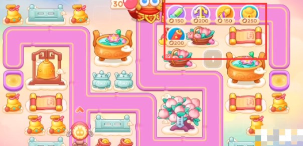 1、本关能够使用的炮塔是:毒针、船锚、烟花、元宝、鞭炮,这一关我们用船锚作为主力输出。