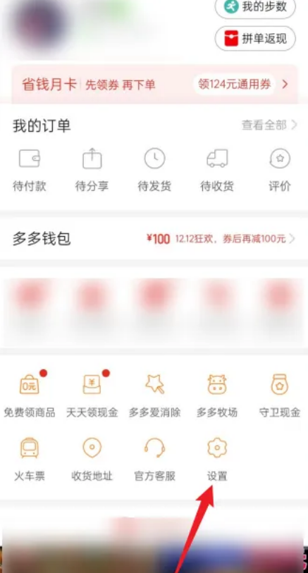 打开手机上的拼多多,在个人中心页面,点击设置进入。