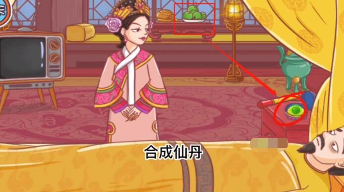 1、第二关【拯救皇上】首先将桌上的绿色苹果拖动到床头的丹药上,合成绿色仙丹