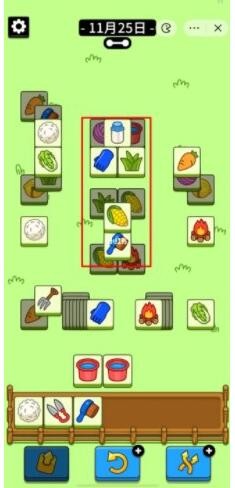 2、同层可以三消的就先消除同层,没有的话就需要查看下一层的物品,然后将需要的物品的上方的道具放置到槽中获得下方的道具。