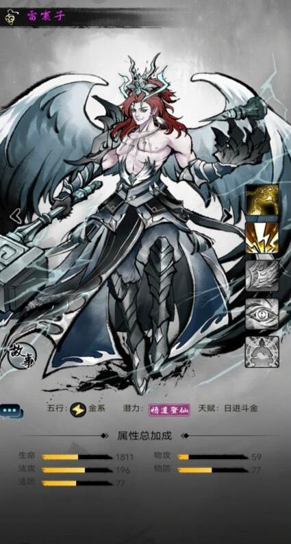1、雷震子是紫色金系仙友中最值得培养的一-个,这得益于他的大招是AOE控制,控制时间也有超高的四回合,本身初始自带25%的几率麻痹,堆上50%-70%的效果命中之基本上控制就不会空,并且普攻也有几率麻痹对方,一旦控制到就等同- -直控制到游戏结束!