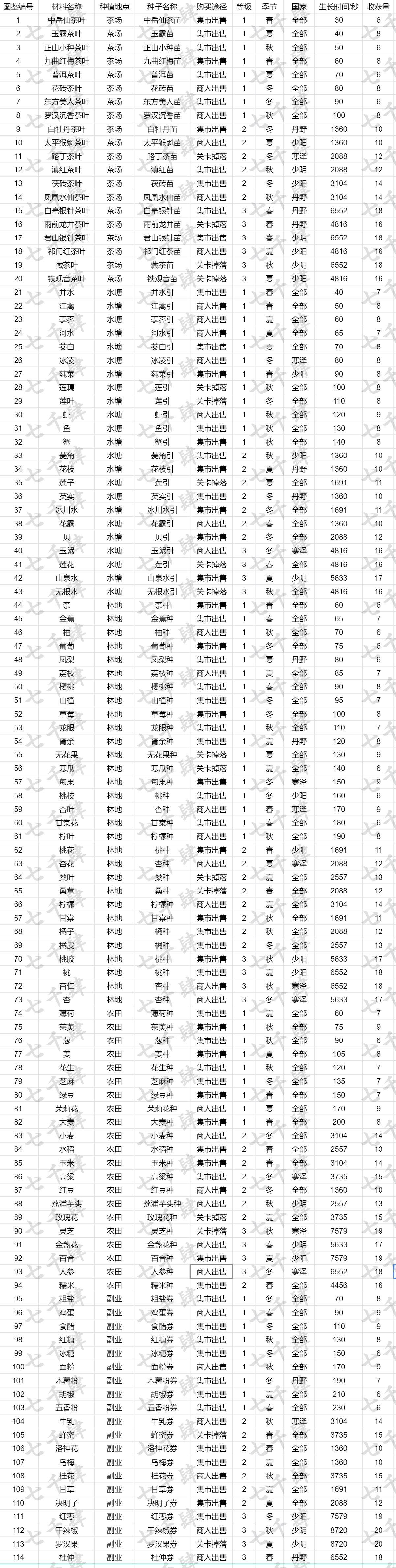 6、长图预警:先放汇总版,然后按照产地放分类版,最后还有个带描述的版本,欢迎大家发掘游戏中的小知识和小彩蛋~