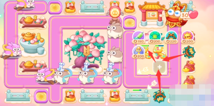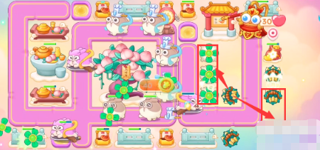 3、附近所有障碍物清除,放置多重箭和风扇,遇到滑板兔的时候注意锁定。