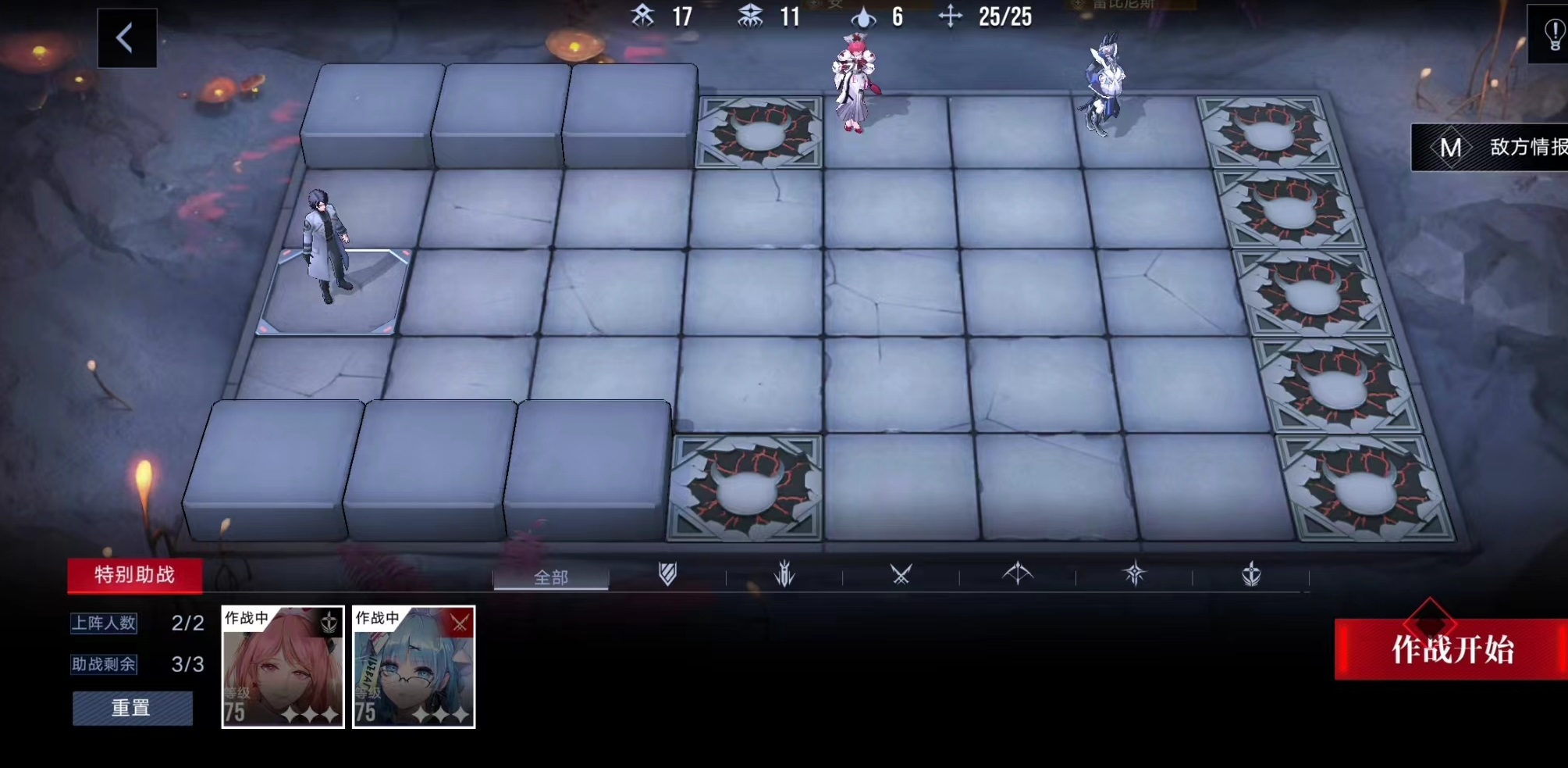 本关只能使用女仆(雷比尼斯)和安这两个个角色,因此对于合理的移动位置和使用大招破核都有一定讲究,比赫卡那关难度是要高一些的。