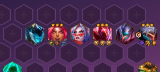 1、棋子组成:猪妹、劫、妖姬、尼菈、剑姬、船长、亚索、温恩。