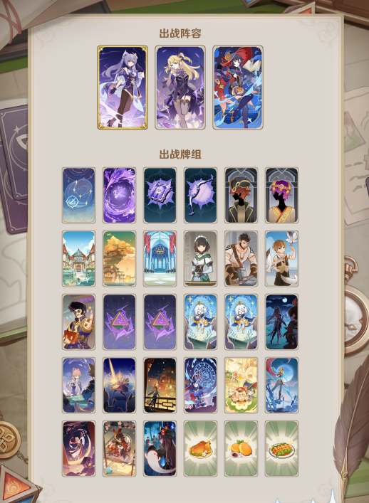 配置参考:宵宫+刻晴+菲谢尔,事件牌(双雷共鸣,充能,万能,鹤归之时),支援牌(璃月港,群玉阁,图书馆,立本)