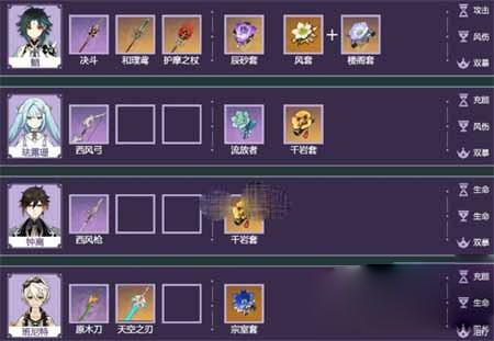 为了给魈补足短板,进一步提升伤害,选择钟离,班尼特作为三,四号位。钟离保护魈输出过程不被打断,班尼特提供奶量,大量补足攻击区。