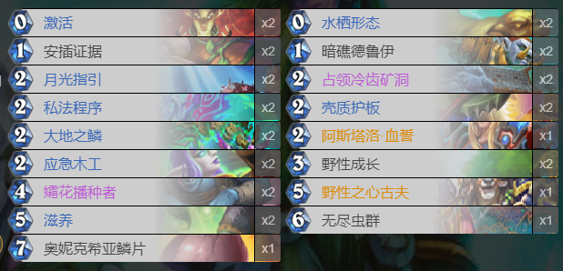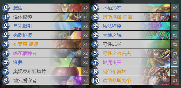 攻略就是正常的主流德鲁伊打法,过牌跳费就完事了。组件到手,10费就赢了,边做成就边上分,古夫大帝就是这般无敌。