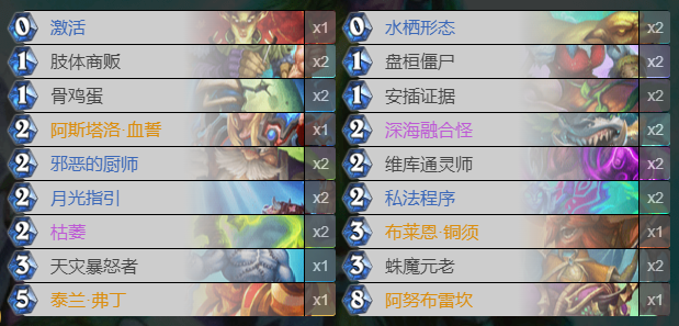 攻略就是起手留枯萎和月光指引,然后铺场亡灵随从,遇到合适的目标就修血再用枯萎吸死。