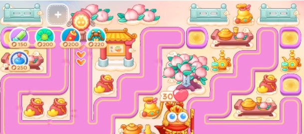 1、本关能够使用的炮塔是:毒针、风扇、鞭炮、多重箭、雷达,这一关我们选择风扇多重箭为主力输出。