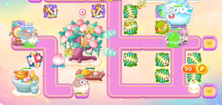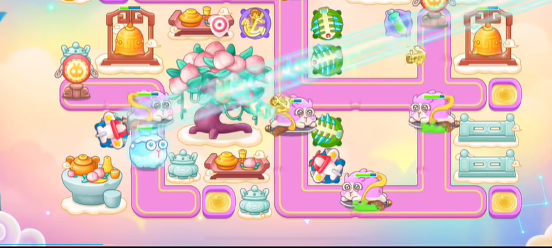 7、今天不管仙女在那边出,都只能在右边放塔,根据仙女行走的轨迹放置塔防,最后一只仙女一定要锁头。