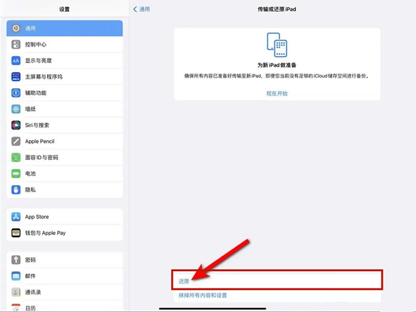 1、打开ipad设置,点击通用,再点击传输或还原ipad。