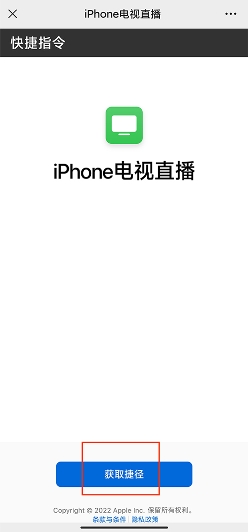 1、在微信果粉俱乐部公众号,发送看电视,点击获取指令链接,点击获取捷径。