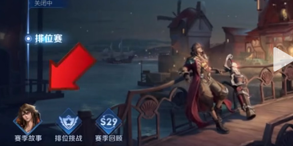 4、第二张五折卡我们需要点击排位,进入英雄赛季故事,然后点击设置直接退出就能领取。