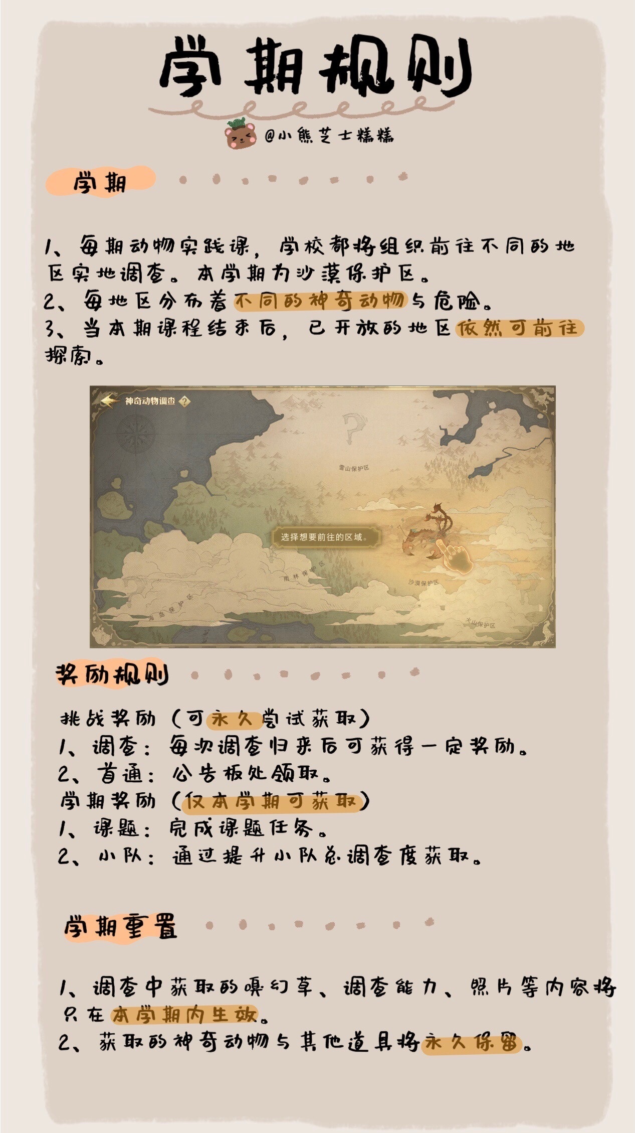 离开校园,向更广阔的世界进发!各位小巫师们,欢迎参加霍格沃茨建校以来首次开课的「神奇动物实践课」,请收好以下课程指南,准时在海格小屋前集合。