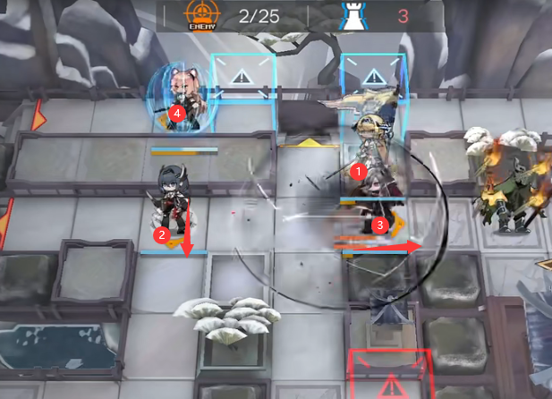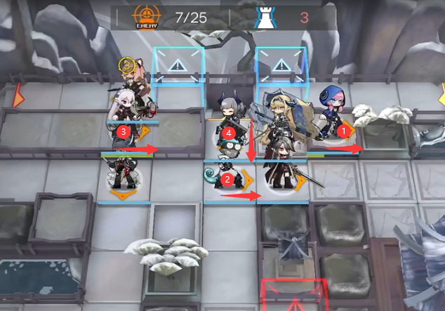 如下图所示继续部署蓝毒(向右),伊桑(向右),华法琳(向右),雷蛇(向下)