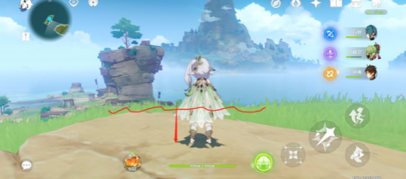 2.视角转到小地图右下角,传送过来应该就是这个视角,我们走前前面悬崖边;