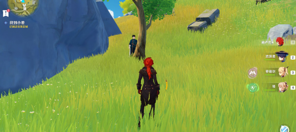 1、与小姜对话,得知他要和我们玩捉迷藏。选择第一个选项直接开始游戏,第一次捉迷藏,小姜藏在山坡上的石头后方;