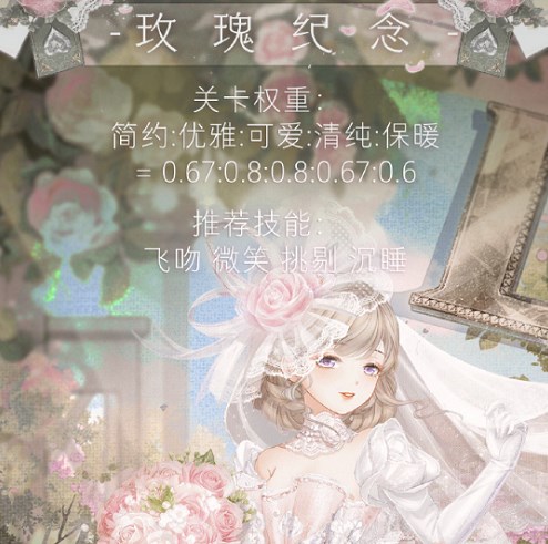 1、关卡权重:简约:优雅:可爱:清纯:保暖 = 0.67:0.8:0.8:0.67:0.6