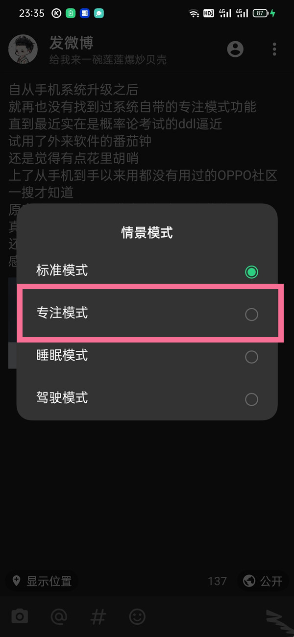 小编提示:上图为ColorOS 13以前系统版本,在ColorOS 13系统中“专注模式”功能入口有了调整。原“情景模式”中的“专注模式”更名为“禅定模式”,可直接在控制中心添加快捷键。