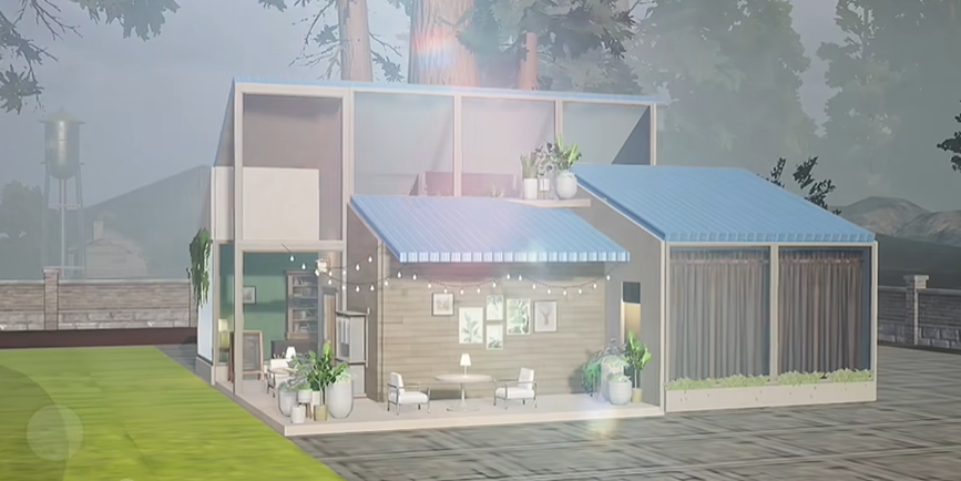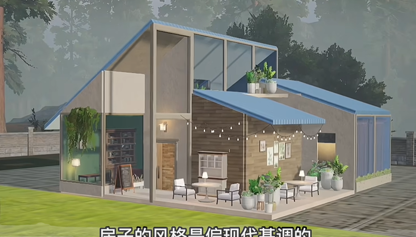 需庄园2级,房子整体偏现代风格,室内不算太大,但是基本功能和分区还是有的,大部分都是家具和结构都是不需要抽奖,在商城可以买到,少部分需要在商城点券购买。
