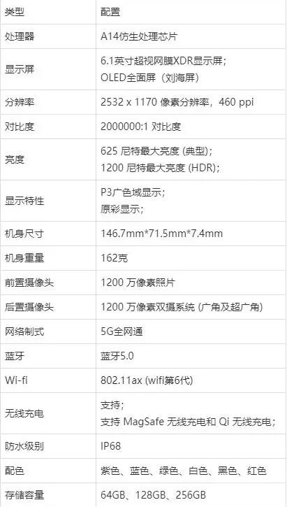 iPhone12配置详情