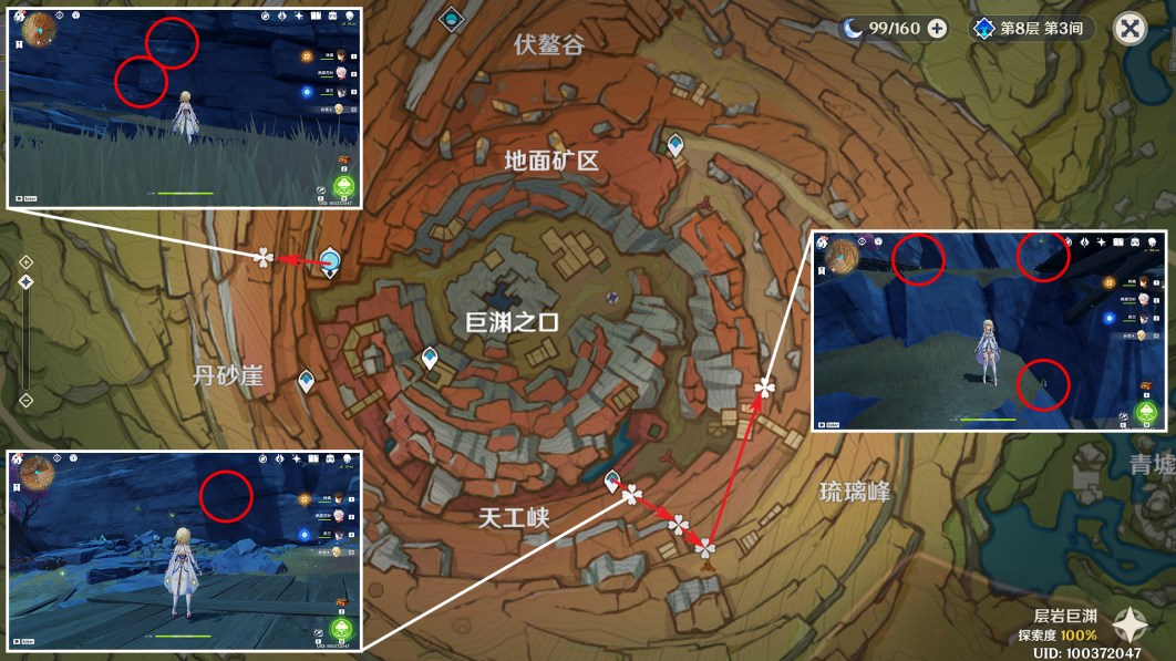 1、层岩巨渊,离传送点较近,比较高效的路线
