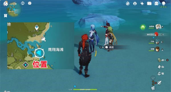 3.优菈、安柏、柯莱,鹰翔海滩西侧(没想到你们三个人聊得还挺开心嘛);
