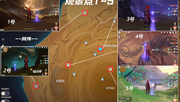以上就是原神千壑沙地观景点位置的具体讲解了,感兴趣的小伙伴可以关注去秀手游网,第一时间掌握最新资讯。