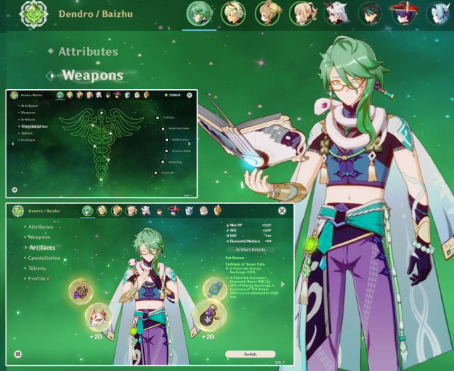 这个法器非常契合白术,提供的生命值加成可以最大化天赋属性增益,还有额外的元素能量回复,减少圣遗物上对于生命词条和充能词条的依赖。