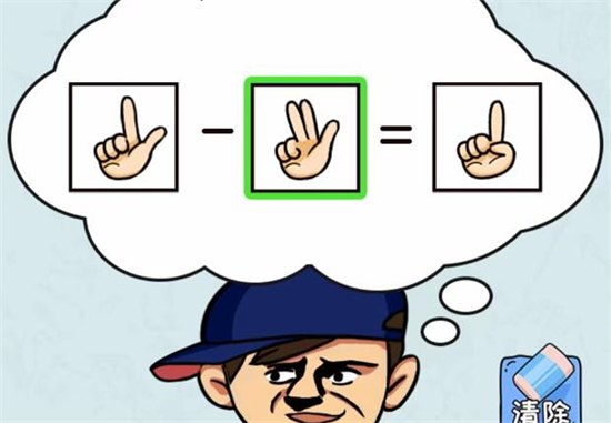 第二关:用第二个手势减去第一个手势即可,也就是【8-7=1】。