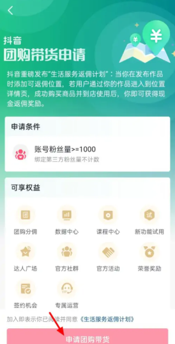 1.抖音团购商家开通前需申请成为企业号,拥有蓝V认证,接着在【抖音】App内点击【我】按钮,再点击屏幕右上角按钮,然后依次点击【企业服务中心】—【团购】,进入团购页面后按照系统提示和要求填写资料申请审核即可,审核一般为1个工作日,审核通过后即成功开通团购。另外,若需创建和管理团购活动,可前往【我】—【企业服务中心】—【团购活动】—【团购活动列表】—【创建团购】,按要求填写信息提交审核即可。
