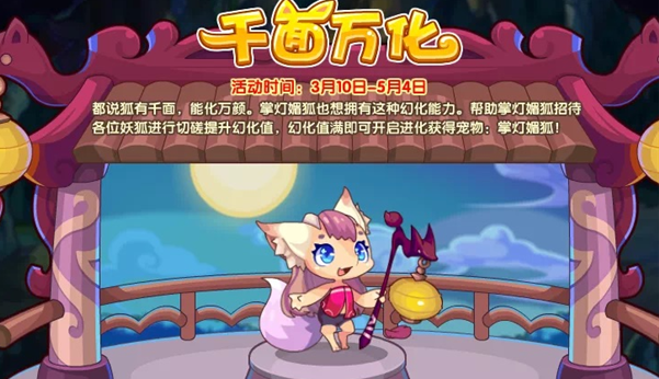 就在今天,游戏洛克王国开放了一个全新的游戏活动-千面万化活动,在这个活动里面,我们是可以获得一只掌灯媚狐活动宠物的,那么这一活动的具体玩法是什么样的呢?小编接下来就来为大家详细解答一下吧!