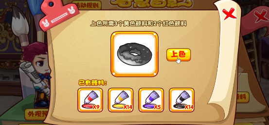2、与兔尾绒、蜗石贝战斗均可概率掉落颜料哦,收集到一定数量的颜料后,就可以把界面所示的四个图案进行上色,每个图案所需的颜料、数量各不相同,填入即可;