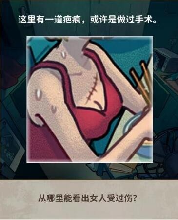1、从哪里能看出女人受过伤?——点击女人胸口的疤痕