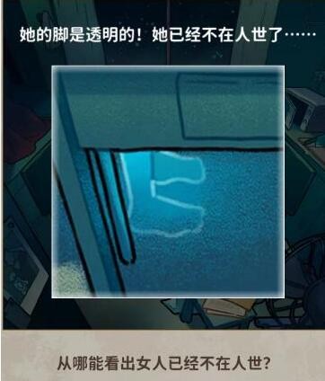 4、从哪能看出女人已经不在人世?——点击桌下女人的裙摆,裙摆会消失露出女人透明的脚,点击脚