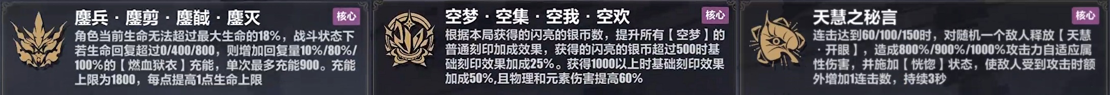 空梦一:杀怪攒钱、全伤和物理/元素,解锁核心即可。