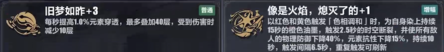 增幅印优先级:数值提高(紫) > 全伤提高(绿) > 元素抗性下降(橙);