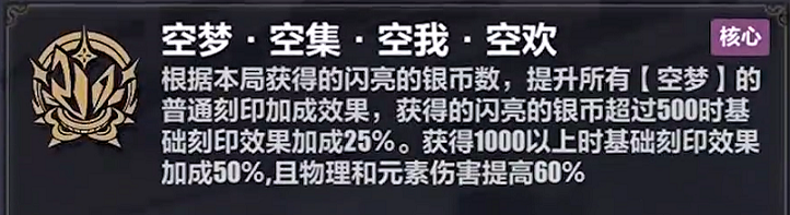 本期因子前5个普通刻印等级+1,再加上猫猫机的空梦刻印等级+1,所以前期拿到的空梦刻印都是+2级,能攒的钱也嘎嘎多。